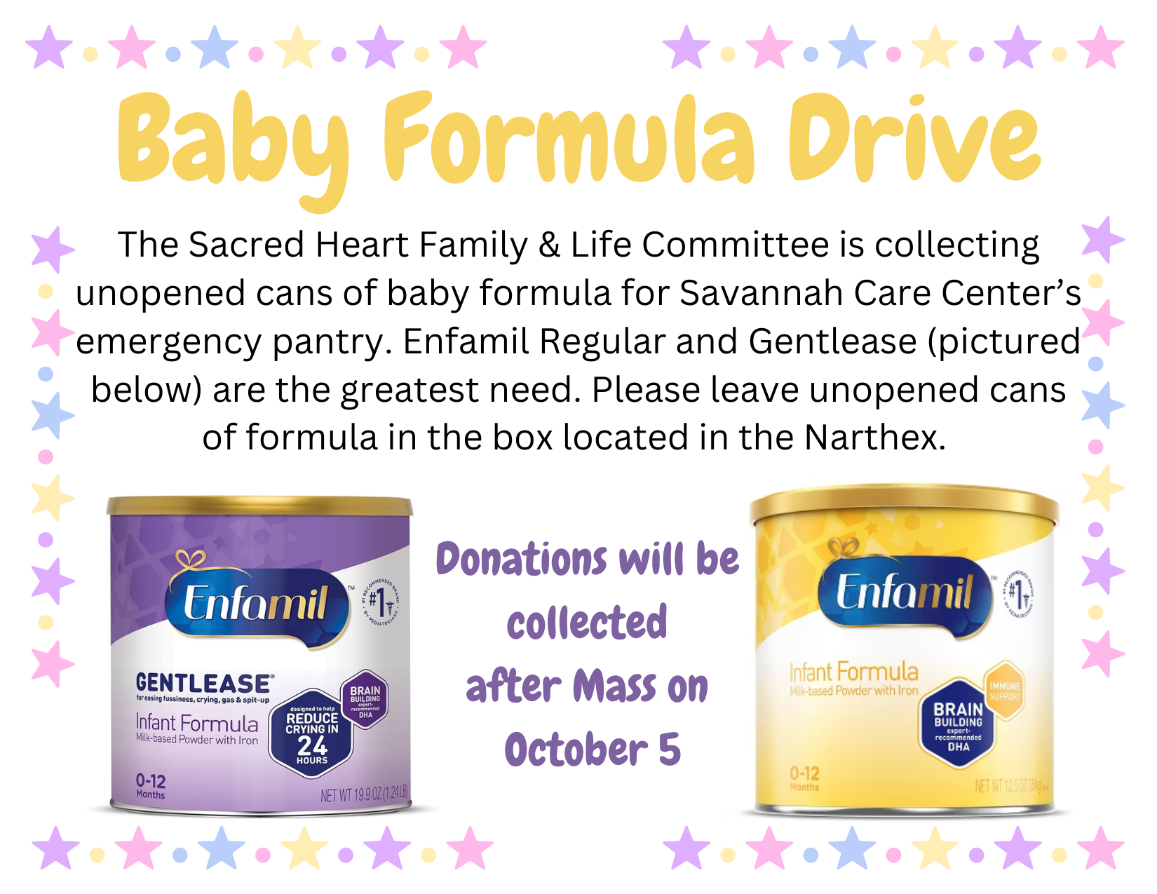 Donations will be collected after Mass on October 5, 2025
